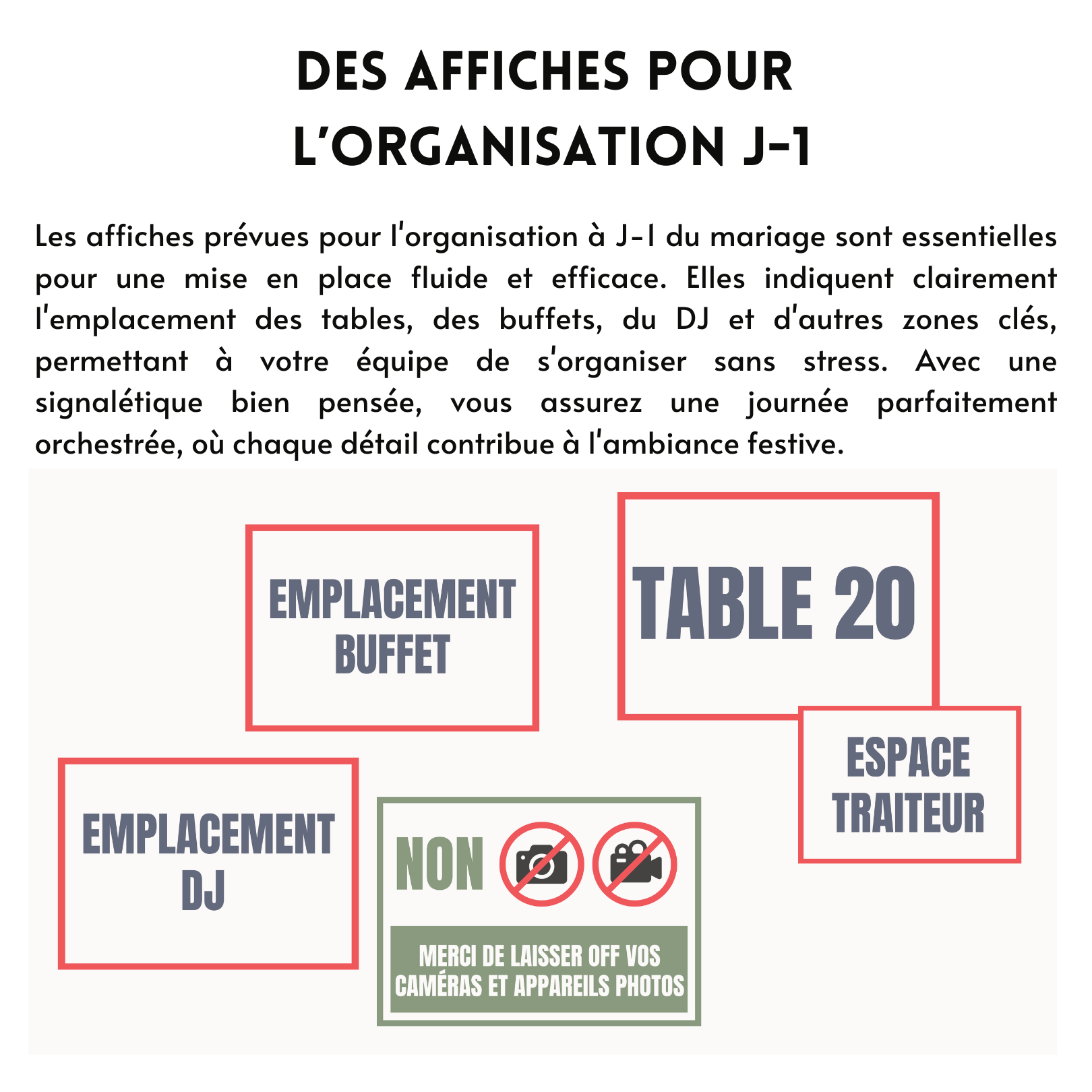 Orientation Parfaite 🗺️ : Facilitez le placement des invités et l’organisation des espaces avec des affiches claires et attrayantes.